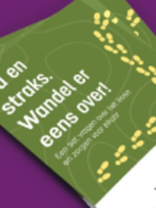 De praatposter Nu en straks. Wandel er eens over! bevat een set vragen om op een ongedwongen moment eens te praten over het leven en over zorgen voor elkaar. Dit voorkomt verrassingen.